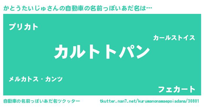 | 女子向けラノベタイトル風あだ名 | 『かとうたいじゅの卵を拾いまして』 |