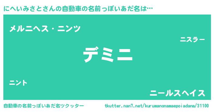 | 女子向けラノベタイトル風あだ名 | 『異世界で失敗しない100のにへいみさと』 |