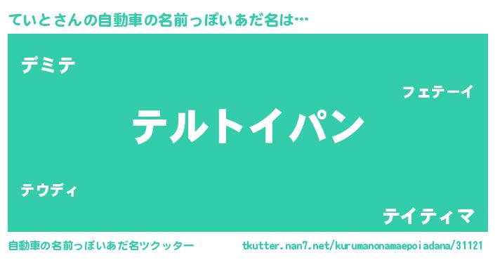 | 胡散臭い通販商品みたいなあだ名 | 『信頼と実績のサプリメント…その名も「ていと」』 |