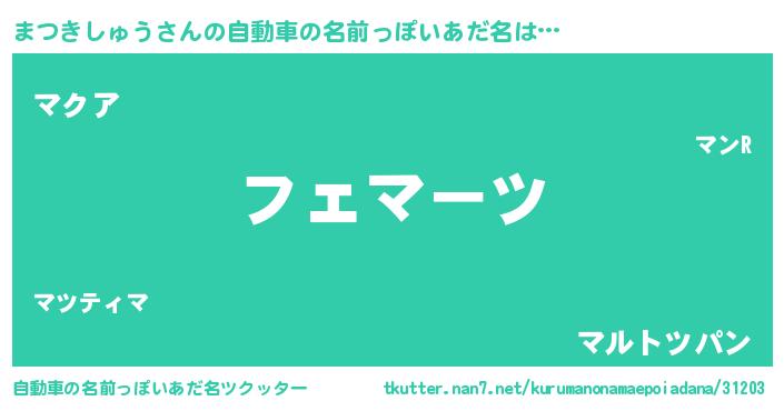 | 欧米人風あだ名 | 『まつきしゅう・ステッグマイヤー』 |