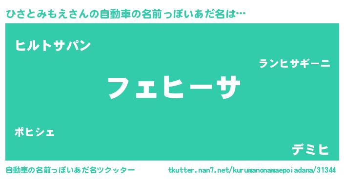| 意味不明あだ名 | 『とにかく怪しいひさとみもえ』 |