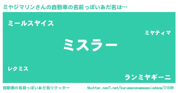 | 欧米人風あだ名 | 『ミヤジマリンクリステル』 |