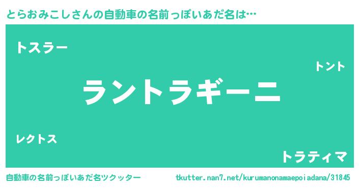 とらおみこしさんの自動車の名前っぽいあだ名をツクッター!