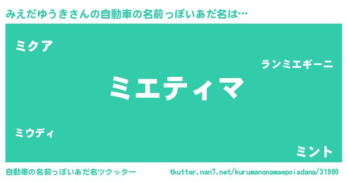 | 胡散臭い通販商品みたいなあだ名 | 『億万長者になれるブレスレット…その名も「みえだゆうき」』 |