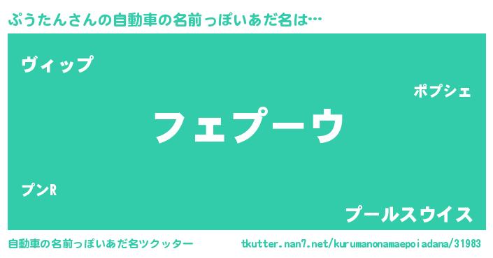 | 胡散臭い通販商品みたいなあだ名 | 『絶対に幸福をもたらす水素水…その名も「ぷうたん」』 |