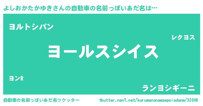 | 女子向けラノベタイトル風あだ名 | 『よしおかたかゆきの玉の輿計画!』 |