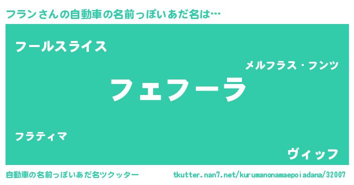 | 意味不明あだ名 | 『もやし科フラン属』『永久保存フラン』 |