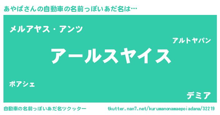 | 男性向けラノベタイトル風あだ名 | 『アヤバスレイヤー』 |
