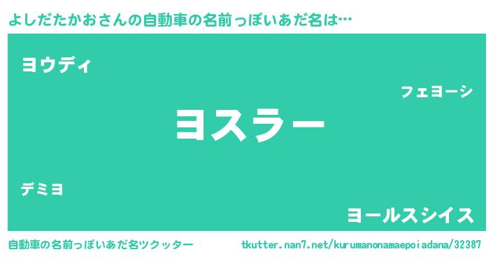 | 欧米人風あだ名 | 『よしだたかおクリステル』 |