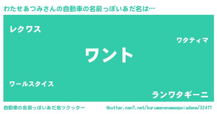 | ポケモン風あだ名 | 『ヒワタセアツミ』『ワタセウス』 |