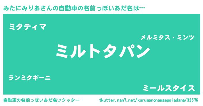 | 意味不明あだ名 | 『とにかく怪しいみたにみりあ』 |