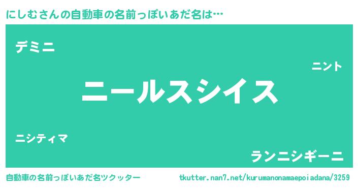 | 男性向けラノベタイトル風あだ名 | 『にしむ~年齢イコール彼女いない歴の魔法使い~』 |