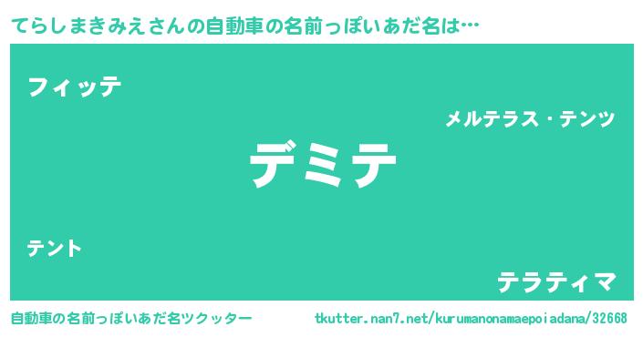 | ヘコむあだ名 | 『てらしまきみえ(笑)』『てらっふぃ~』 |