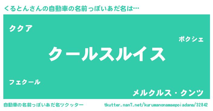 | 男性向けラノベタイトル風あだ名 | 『くるとん~年齢イコール彼女いない歴の魔法使い~』 |