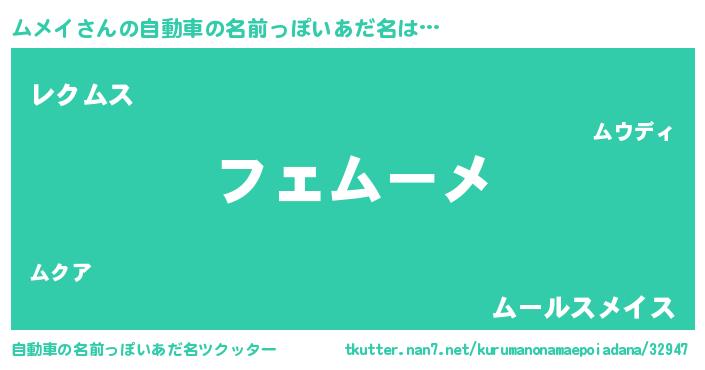 | 意味不明あだ名 | 『自称ムメイ』『めかぶ科ムメイ属』 |
