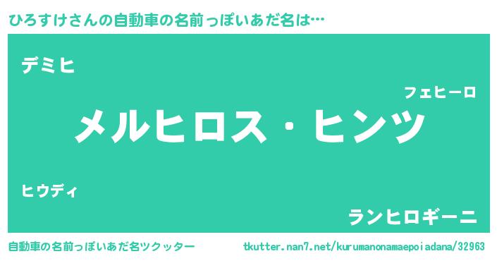 | 男性向けラノベタイトル風あだ名 | 『Re:ひろすけから始める異世界生活』 |