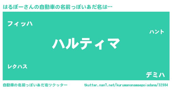 | 男性向けラノベタイトル風あだ名 | 『ハルボーアートオンライン』 |
