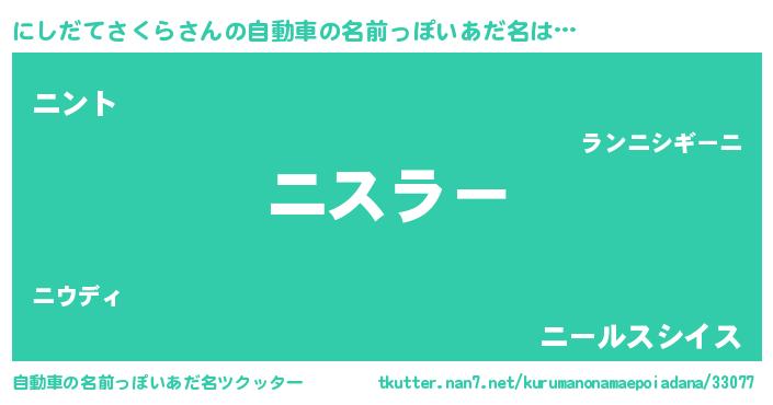 | ポケモン風あだ名 | 『ニシダダネ』『ヒニシダテサクラ』 |