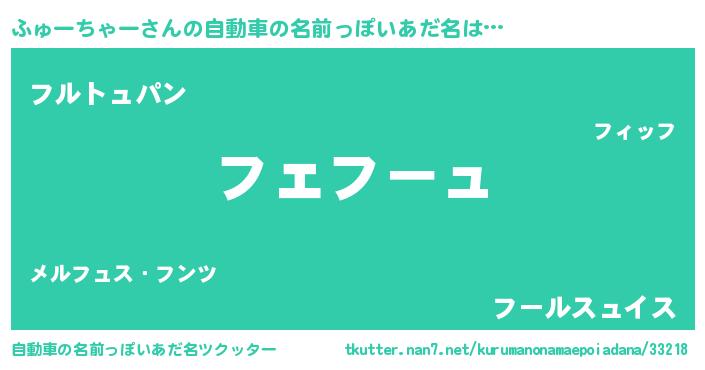 | 胡散臭い通販商品みたいなあだ名 | 『信頼と実績のサプリメント…その名も「ふゅーちゃー」』 |