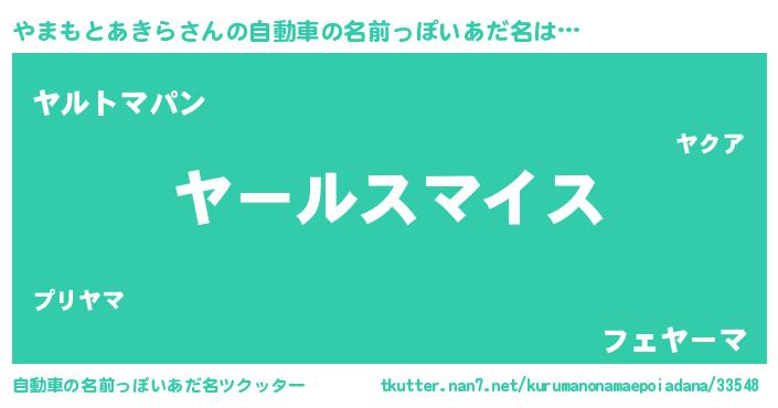 | 男性向けラノベタイトル風あだ名 | 『やまもとあきら~年齢イコール彼女いない歴の魔法使い~』 |