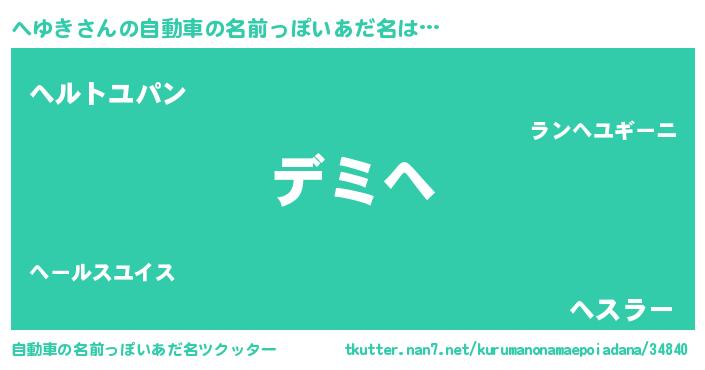 | 男性向けラノベタイトル風あだ名 | 『へゆきという概念が存在しない退屈な世界 』 |
