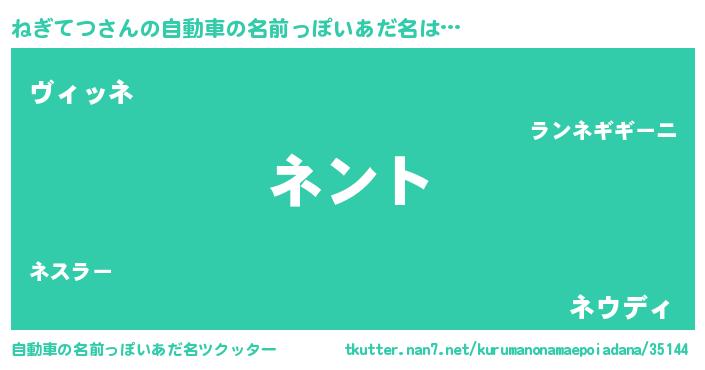 | 男性向けラノベタイトル風あだ名 | 『ねぎてつの嫁は女の子じゃないと思った?』 |