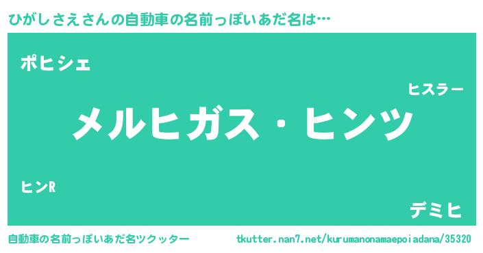 | 男性向けラノベタイトル風あだ名 | 『Re:ひがしさえから始める異世界生活』 |