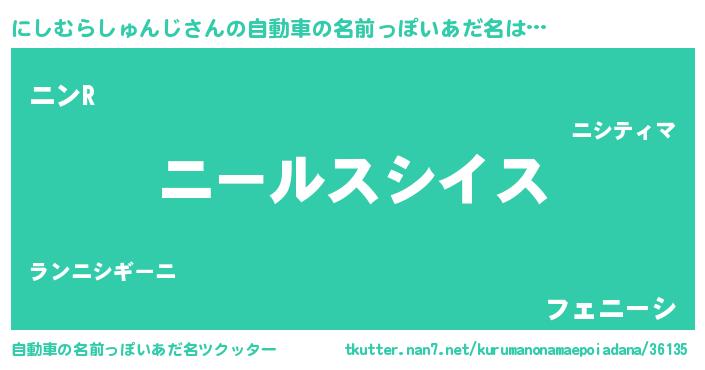 | 男性向けラノベタイトル風あだ名 | 『転生したらにしむらしゅんじだった件』 |