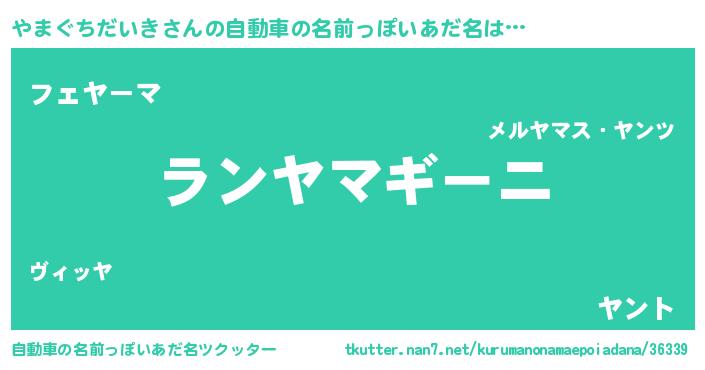 | 欧米人風あだ名 | 『アンジェラ・やまぐちだいき』 |