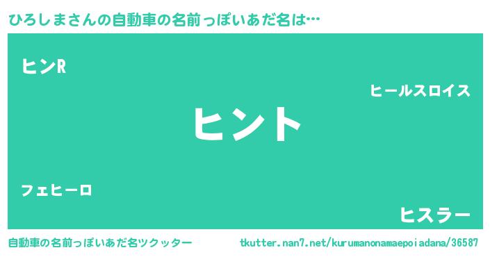 | 女子向けラノベタイトル風あだ名 | 『ひろしまの卵を拾いまして』 |
