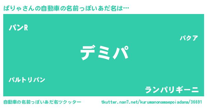 | 男性向けラノベタイトル風あだ名 | 『ぱりゃという概念が存在しない退屈な世界 』 |