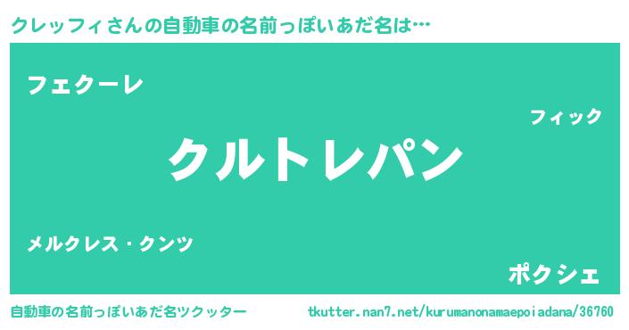 | 胡散臭い通販商品みたいなあだ名 | 『信頼と実績のサプリメント…その名も「クレッフィ」』 |