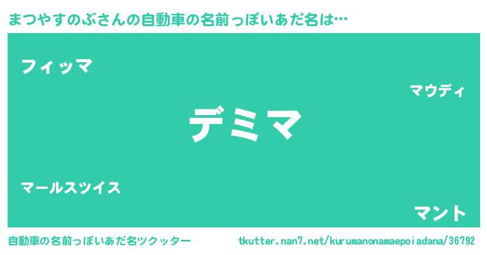 | 胡散臭い通販商品みたいなあだ名 | 『来世でも幸せになれる水素水…その名も「まつやすのぶ」』 |