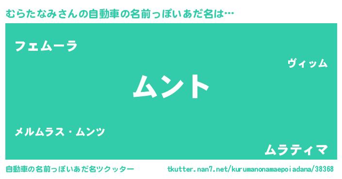 | 男性向けラノベタイトル風あだ名 | 『むらたなみの嫁は女の子じゃないと思った?』 |