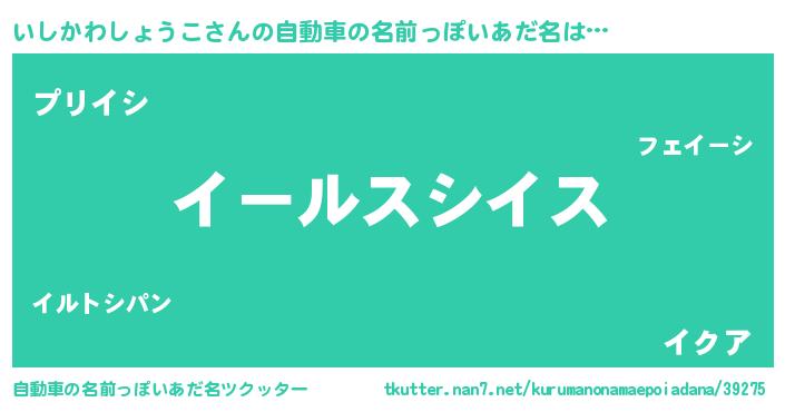 | 男性向けラノベタイトル風あだ名 | 『いしかわしょうこ~年齢イコール彼女いない歴の魔法使い~』 |