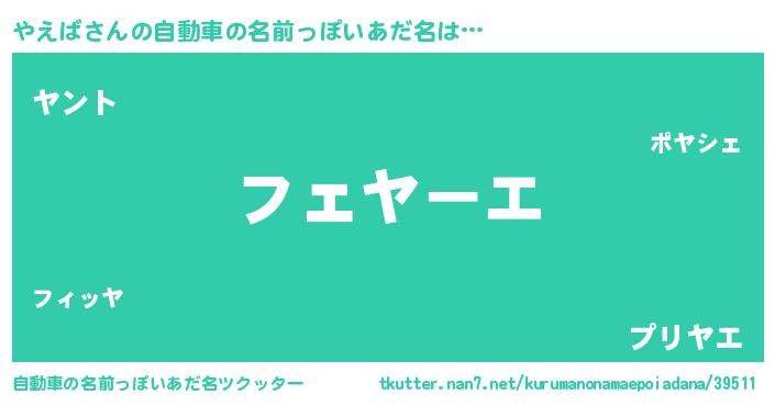 | 欧米人風あだ名 | 『やえば・ステッグマイヤー』 |