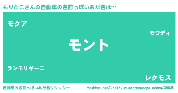 | 男性向けラノベタイトル風あだ名 | 『もりたこの嫁は女の子じゃないと思った?』 |