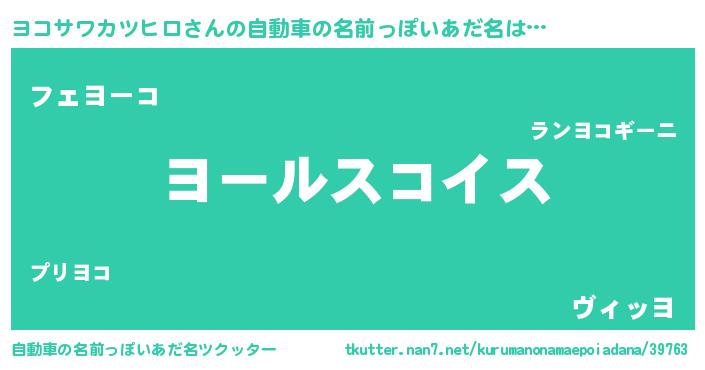 | 男性向けラノベタイトル風あだ名 | 『ヨコサワカツヒロスレイヤー』 |