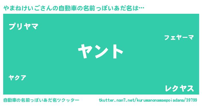 | 男性向けラノベタイトル風あだ名 | 『やまねけいごの嫁は女の子じゃないと思った?』 |
