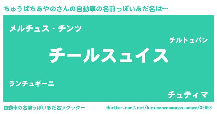 | 男性向けラノベタイトル風あだ名 | 『転生したらちゅうばちあやのだった件』 |