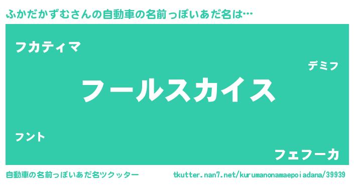 | 男性向けラノベタイトル風あだ名 | 『ふかだかずむ~年齢イコール彼女いない歴の魔法使い~』 |