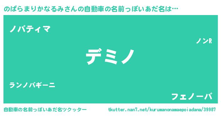 | 男性向けラノベタイトル風あだ名 | 『のばらまりかなるみという概念が存在しない退屈な世界 』 |
