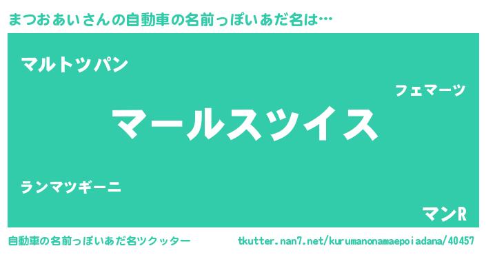 | 男性向けラノベタイトル風あだ名 | 『まつおあい~年齢イコール彼女いない歴の魔法使い~』 |