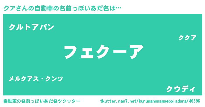 | 意味不明あだ名 | 『とにかく怪しいクア』『自称クア』 |