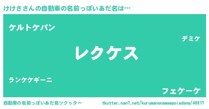 けけささんの自動車の名前っぽいあだ名をツクッター!