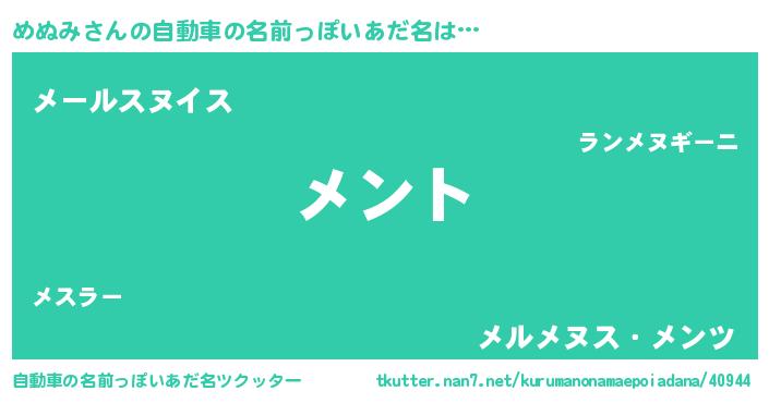 | ポケモン風あだ名 | 『ヒメヌミ』『メヌキング』 |