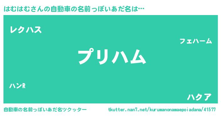 | ファンタジー風あだ名 | 『ハムフェル』『ゼハムトゥ』 |