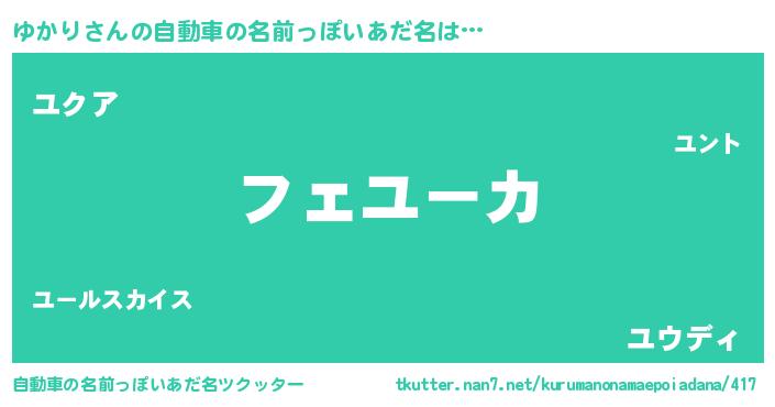 | 欧米人風あだ名 | 『ゆかり・ステッグマイヤー』 |