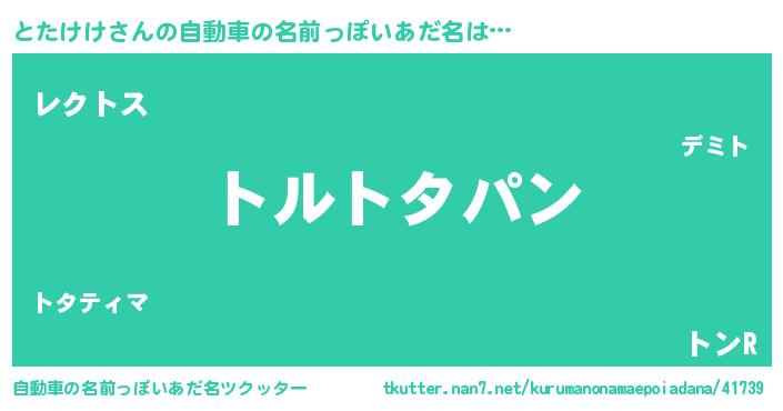 | ヒーロー風カッコイイあだ名 | 『魔戒騎士トタ』『サイバー戦士トタケケ』 |