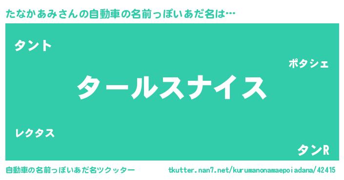 | ポケモン風あだ名 | 『タナキング』『ヒタナカアミ』 |